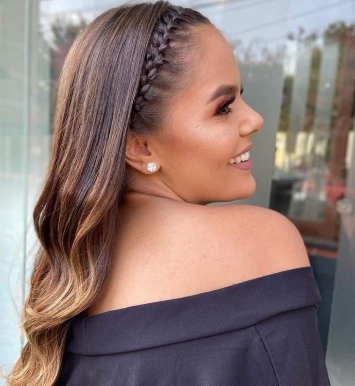 Trenza en forma de diadema que rodea la cabeza, perfecta para un look romántico y delicado.
